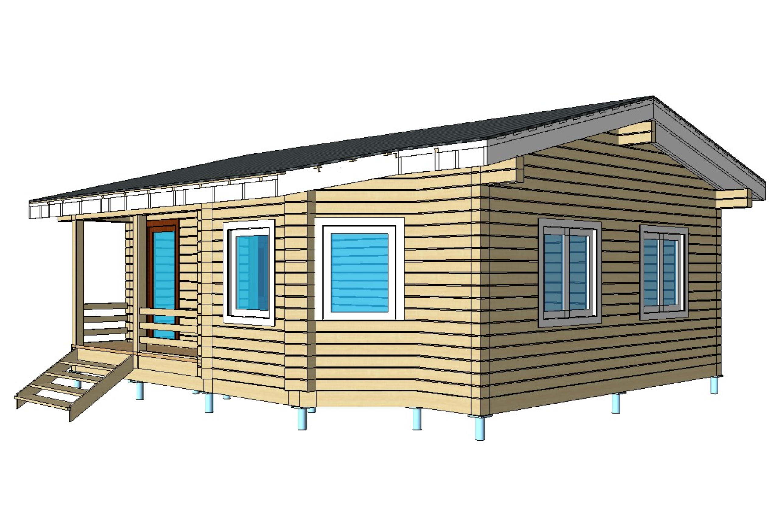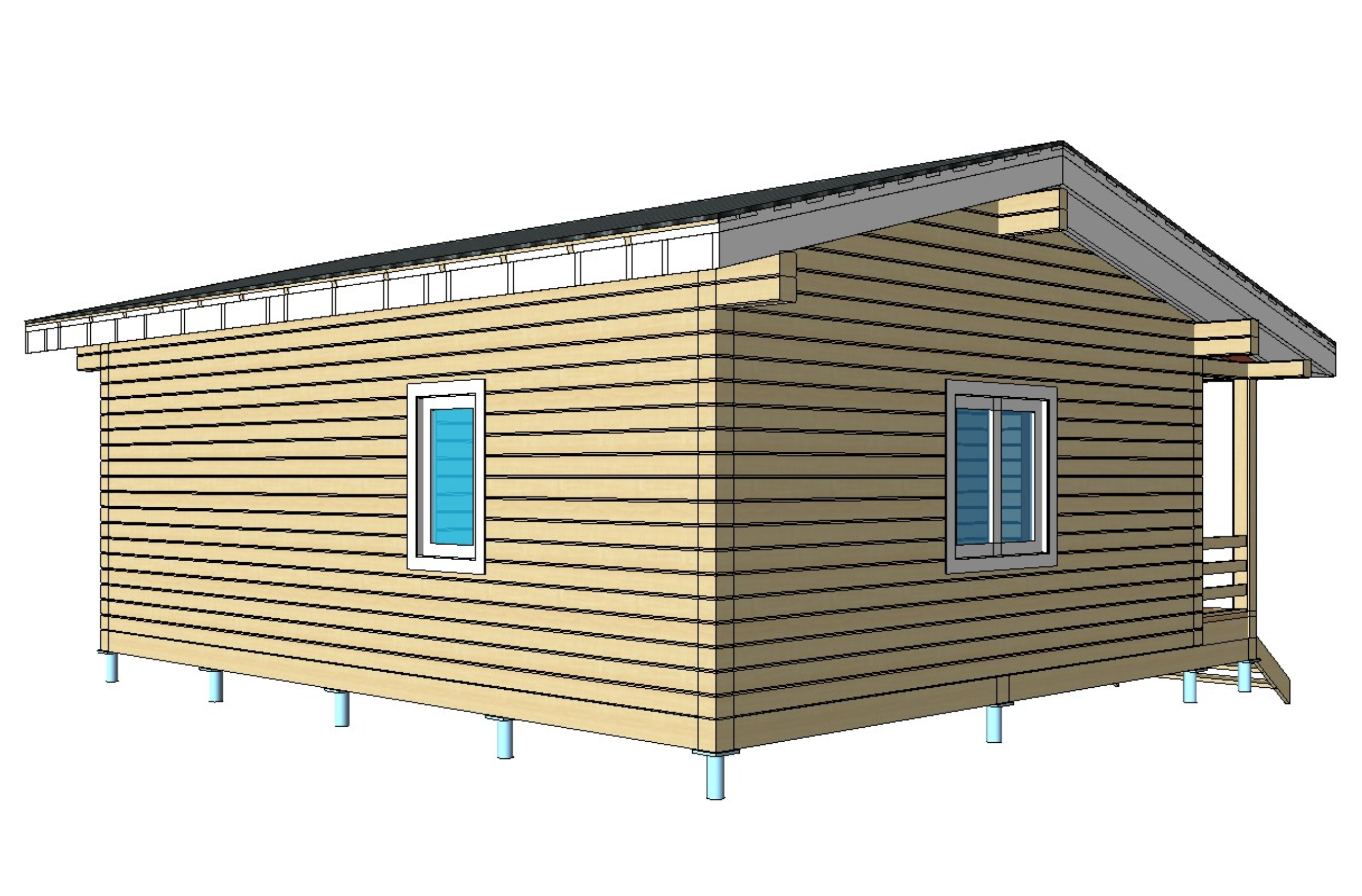 Дом изготовлен из пильного бруса 150*150 мм с эркером. тропильная система Линейные размеры дома 7,85*6,85 м.