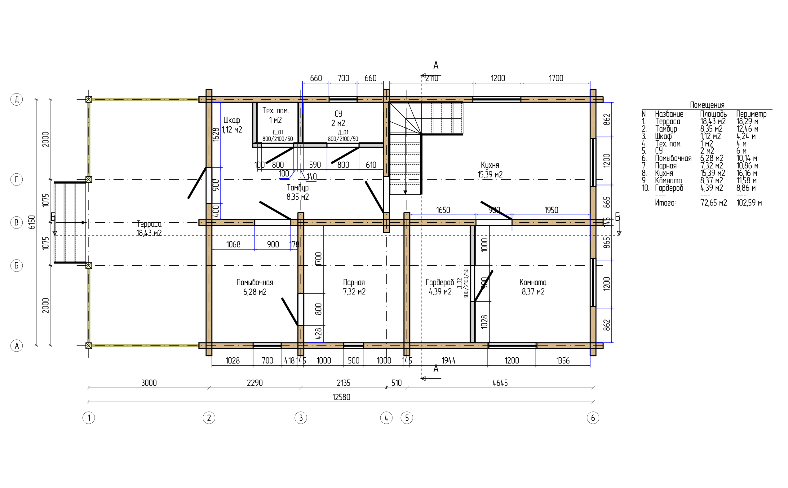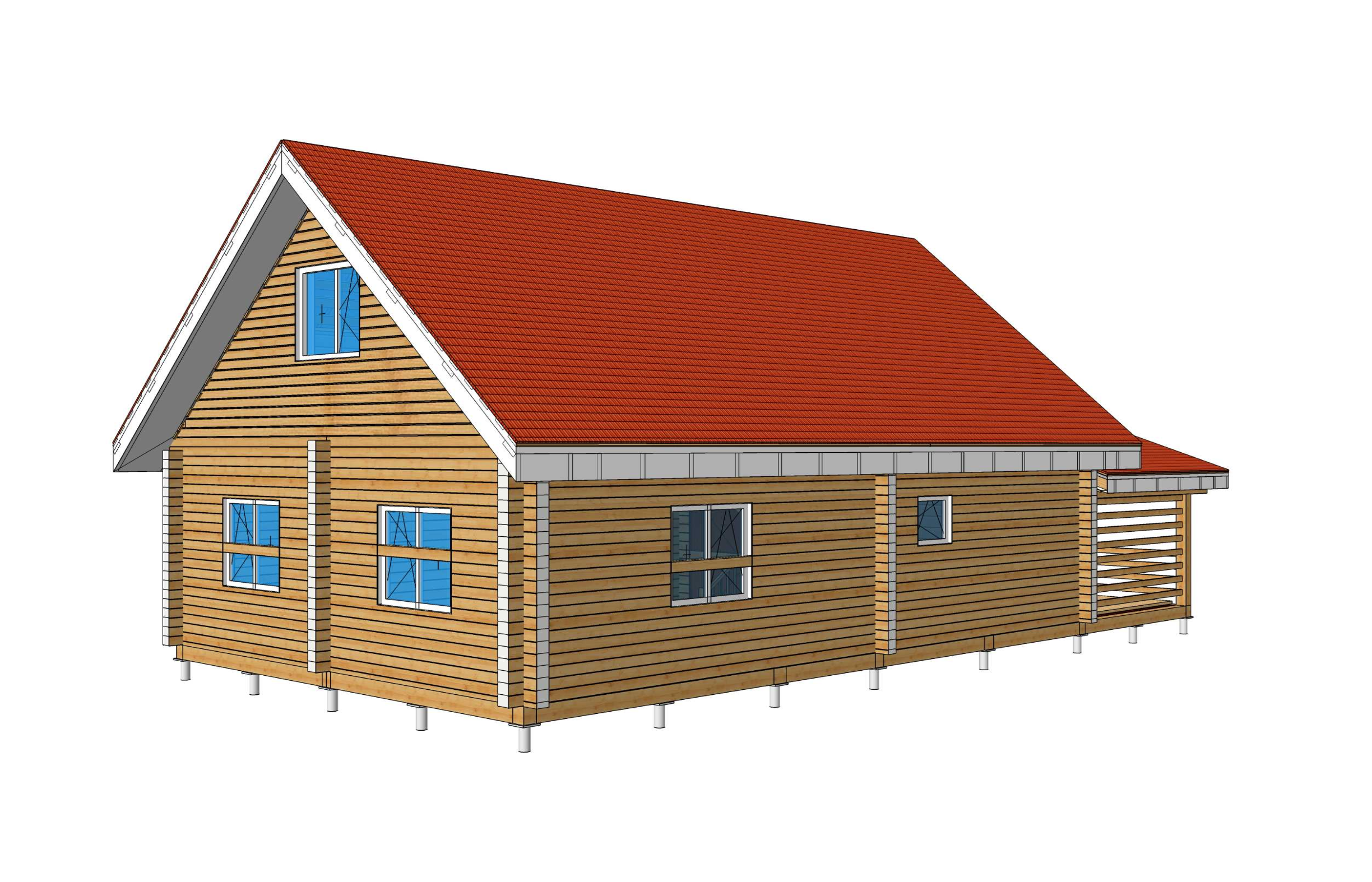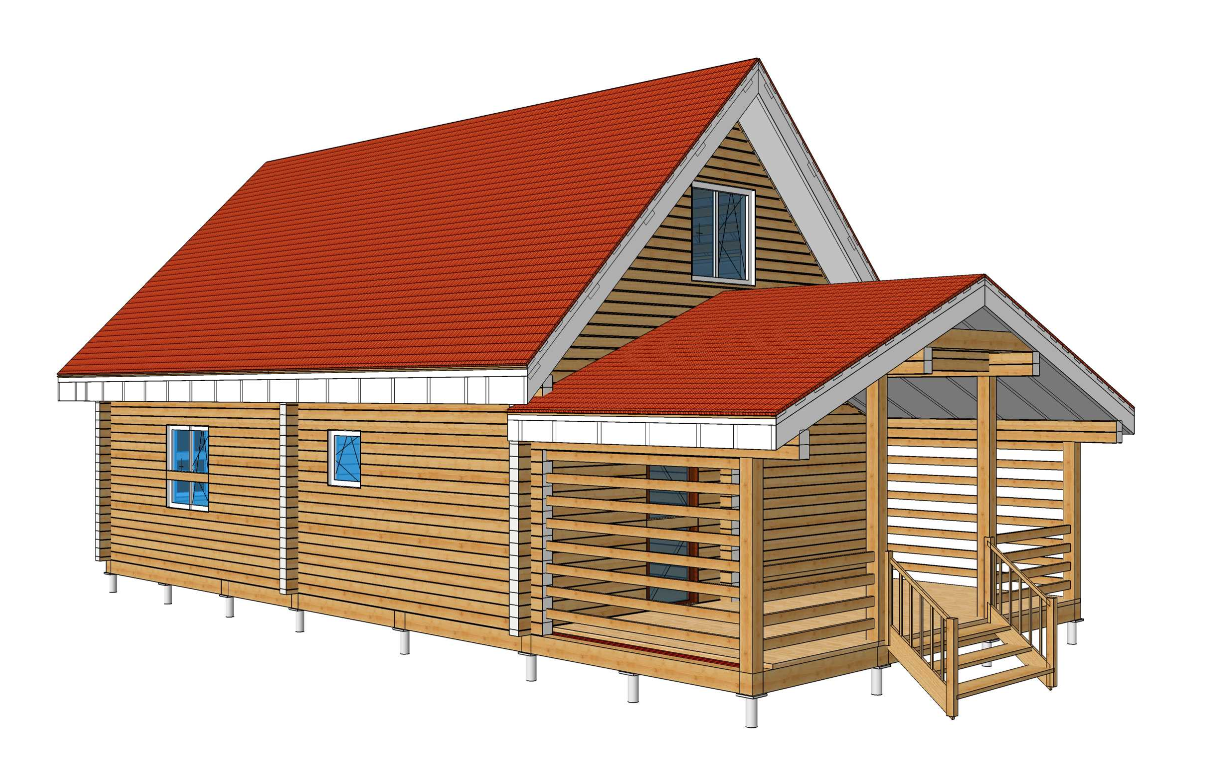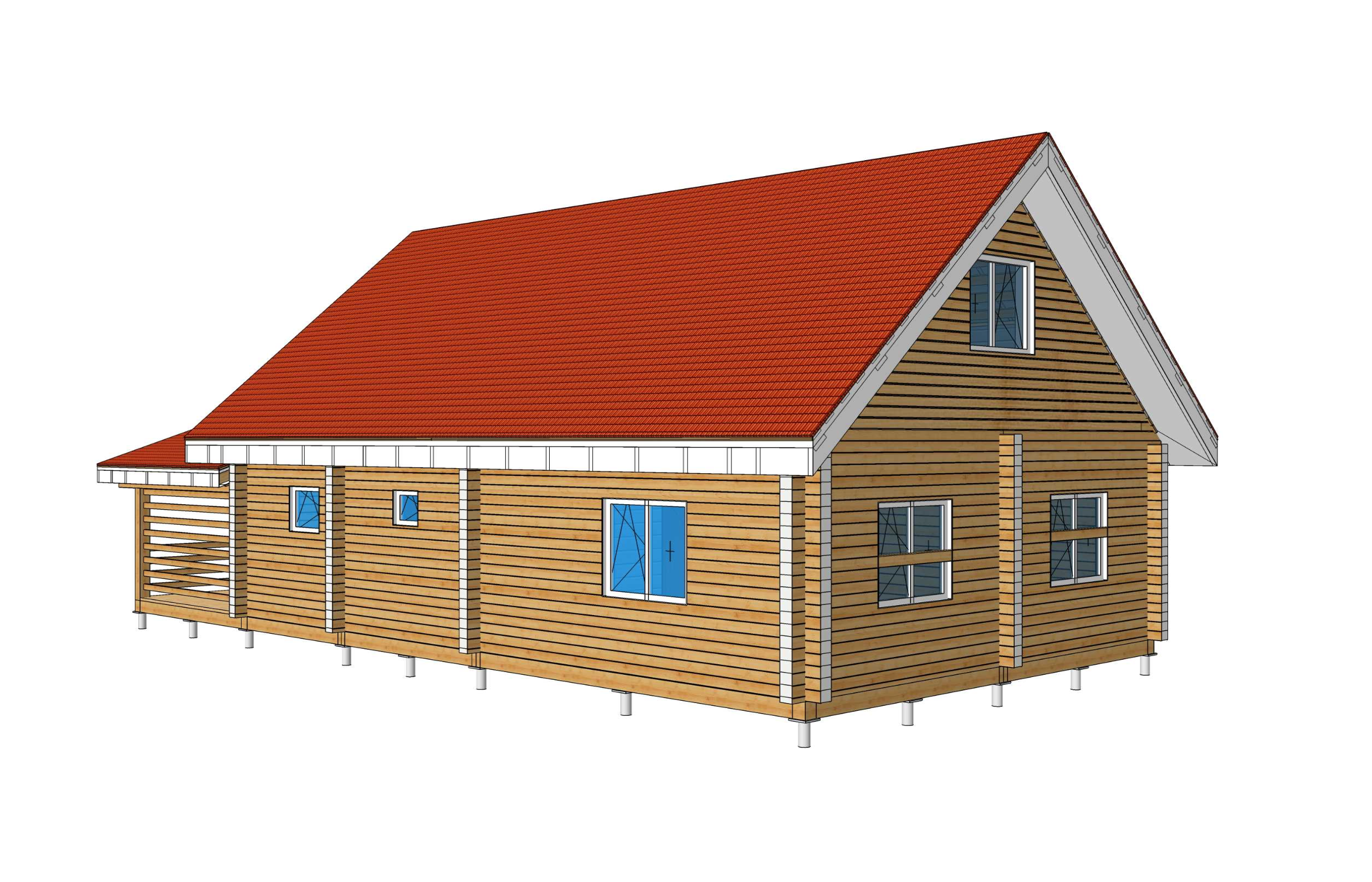 Дом из профилированного бруса 6*12 с террасой. Площадь дома: 102,59 м2